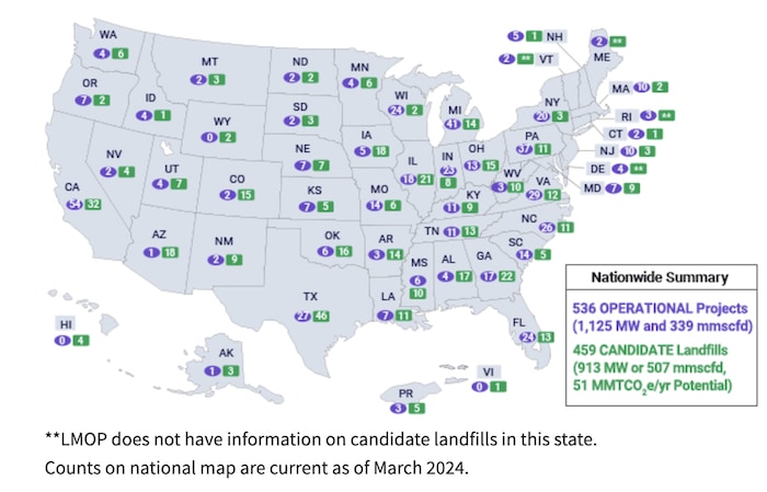 - Landfills are the third largest source of methane — a greenhouse gas that’s 25% more potent than CO2 — emissions in the U.S.