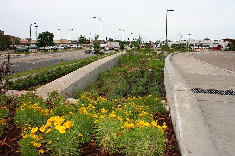 Landscaping around roads near a Park Ridge, Illinois hospital includes native plants. Center for Neighborhood Technology / Flickr